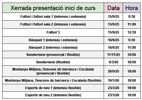 Xerrades informatives inici de curs 2025-2026